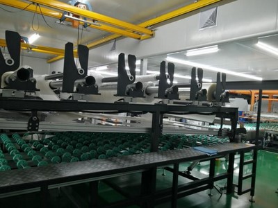 主要由自动上片台、清洗干燥机、合片定位输送机、自动行走吸盘吊架、PVB 胶膜铺摊机、合片房、预压机、下片台、蒸压釜等组成。